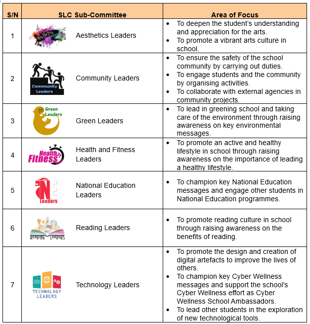The Council’s leadership term is from July (Current year) to June (Following year) with yearly appointment of new members and re-appointment of existing SLC members. Tier 2 Student leaders have to attend SLC training on Wednesdays. When additional training sessions are required, the SLC teachers will inform the student leaders accordingly. The re-appointment of existing SLC Leaders is subjected to continued exemplary conduct in school as well as commitment to the SLC.
