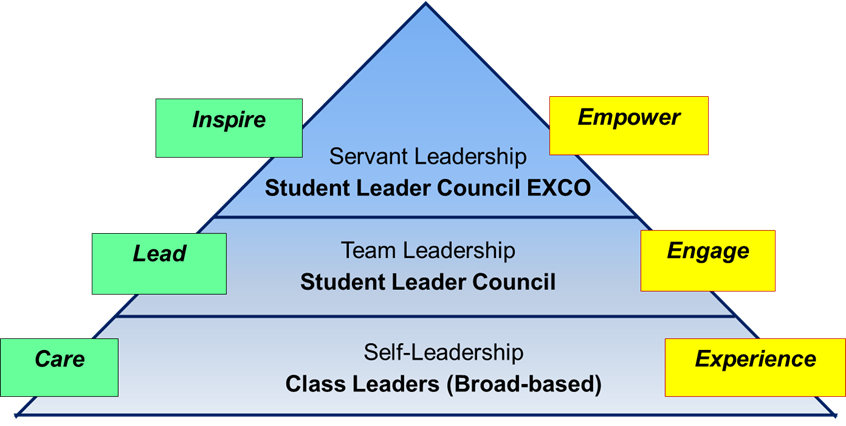 In the 1st tier of Self-Leadership, the school sets the foundation of each Ai Tong School students to be effective leaders of themselves. In the 2nd tier of Team Leadership, structured platforms are provided for students to serve the school to develop students’ ability to care, lead and inspire. Lastly, in the 3rd tier of Servant Leadership, the school envisages that through the opportunities provided for students, they will be able to advocate a transformation in the community. The platforms and opportunities presented in each tier aims to develop and allow the students to make a significant degree of impact on their peers, school and beyond.